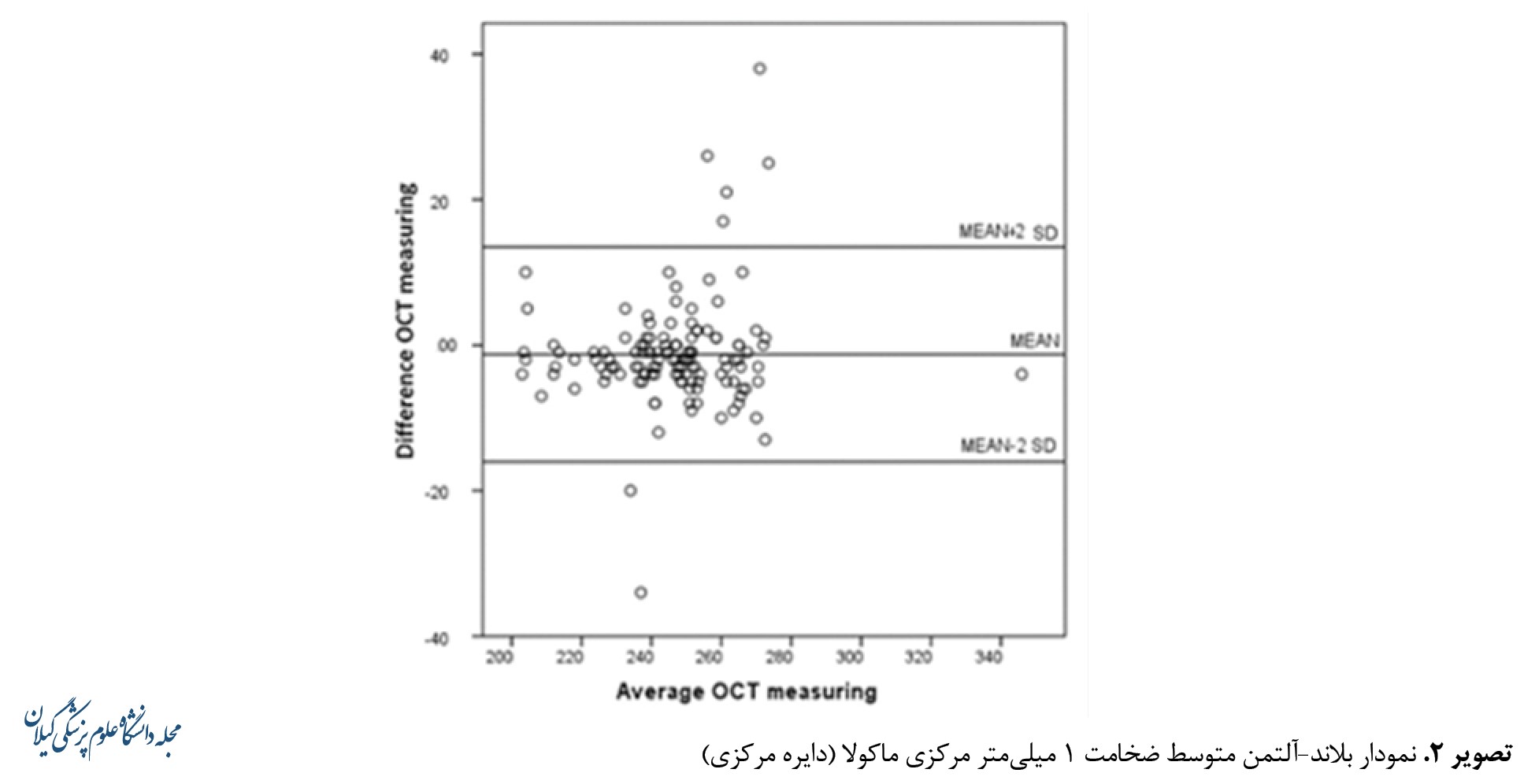 اطلاعات با استفاده از نرمافزار SPSS ویرایش 16 تجزیهوتحلیل شد. جهت آنالیز دادهها از شاخص ضریب همبستگی درونردهای، روش دوطرفه مختلط و فاصله اطمینان 95 درصد استفاده شد. جهت بررسی توزیع نرمالیتی ضخامت ها از آزمون کولموگروف اسمیرنف استفاده شد. همچنین نمودار بلاند-آلتمن جهت ارزیابی پایایی و تکرارپذیری ضخامتها با استفاده از دستگاه Cirrus OCT استفاده شد. سطح معنیداری آزمونها با P˂0/05 در نظر گرفته شده است.