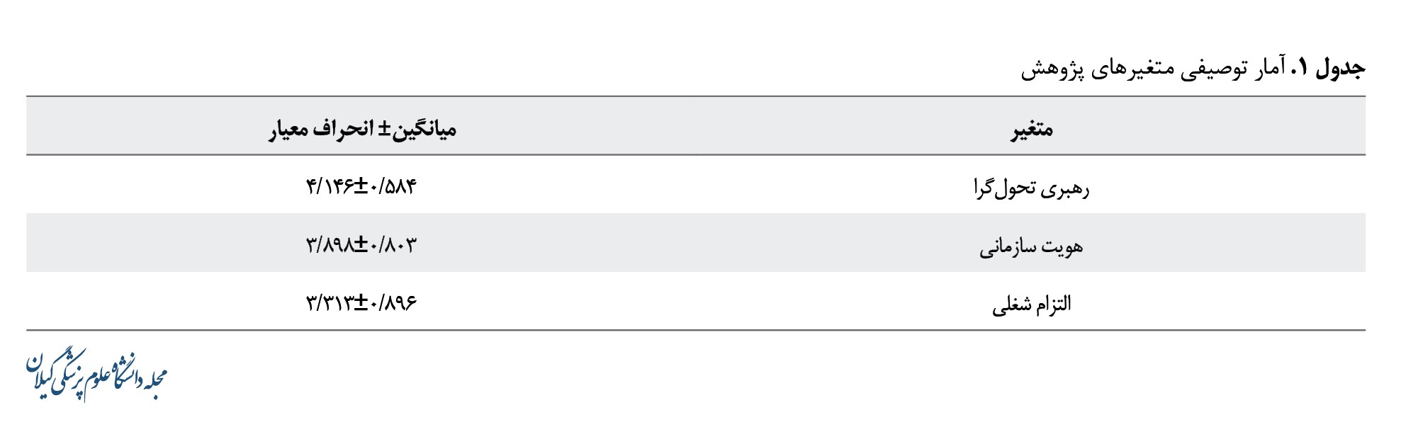 1. رهبری تحولگرا بر هویت سازمانی پرستاران دانشگاه علومپزشکی گیلان تأثیر دارد؛ 2.رهبری تحولگرا بر التزام شغلی پرستاران دانشگاه علومپزشکی گیلان تأثیر دارد؛ 3. هویت سازمانی بر التزام شغلی پرستاران دانشگاه علومپزشکی گیلان تأثیر دارد؛ 4. رهبری تحولگرا ازطریق هویت سازمانی بر التزام شغلی پرستاران دانشگاه علومپزشکی گیلان تأثیر دارد.