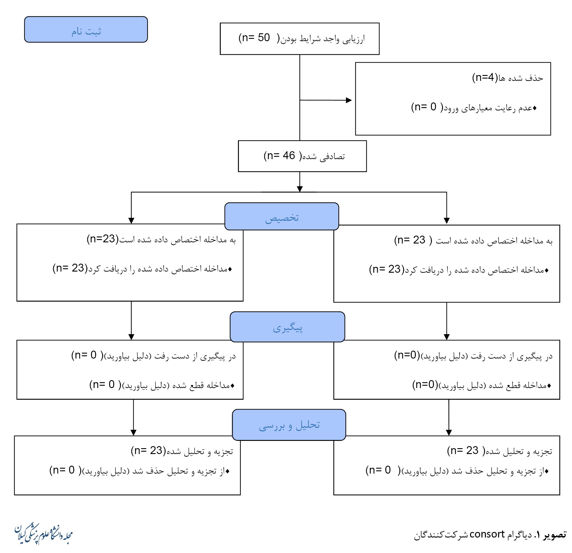 پس از تأیید واژینیت کاندیدایی 46 بیمار وارد مطالعه و 4 نفر از مطالعه خارج شدند (