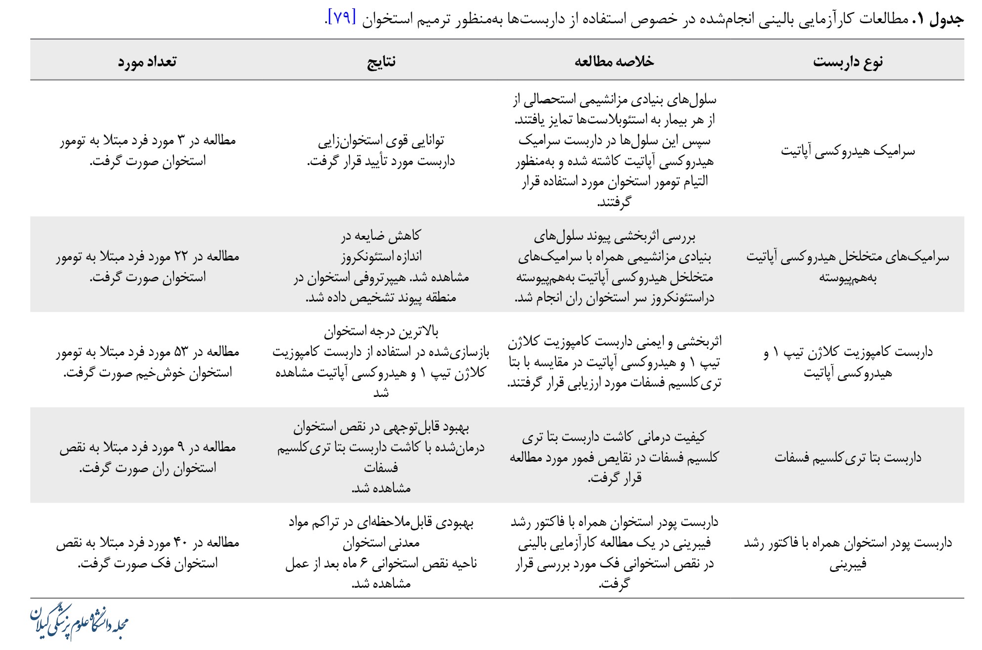Wubneh A, Tsekoura EK, Ayranci C, Uludağ H. Current state of fabrication technologies and materials for bone tissue engineering. Acta Biomaterialia. 2018; 80:1-30. [DOI:10.1016/j.actbio.2018.09.031] [PMID]
