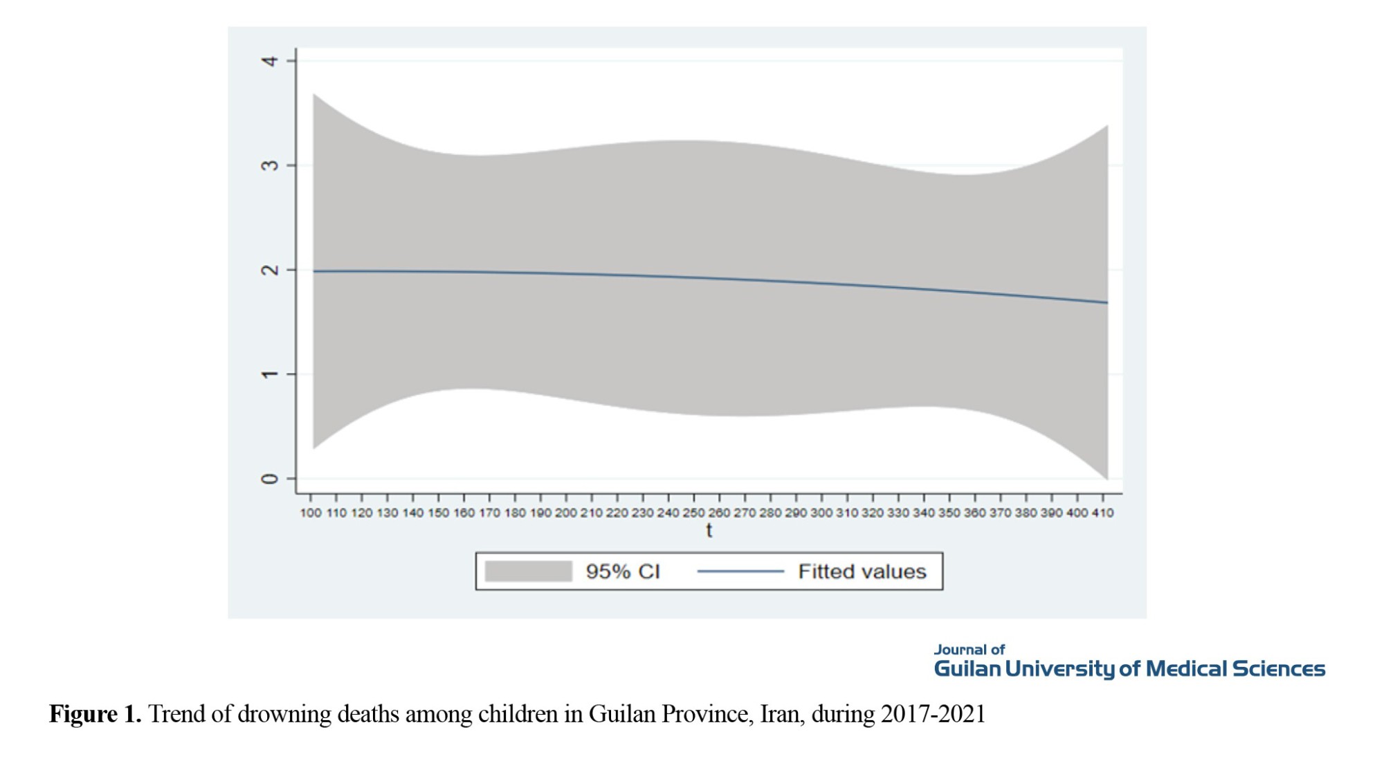 Drowning is the third leading cause of unintentional death worldwide. In many developed countries, it is the second leading cause of death in children under 15 years of age, following traffic accidents. The incidence of drowning in children varies across countries. Previous studies have shown that most fatal drownings occur in low- and middle-income countries. In Iran, the annual incidence of drowning deaths in children under 15 years of age is 6.12 per 100000 population, although this may be underestimated. The common locations of drowning vary by age. In children under one year of age, home swimming pools, especially bathtubs, are common sites, while in adolescents aged 15-19, natural waters such as streams, rivers, and lakes are more frequent locations for drowning. Drowning occurs most frequently on weekends and in the summertime months. The aim of this study is to determine the regional burden of child drowning in Guilan Province, Iran, that occurred during 2017-2021.