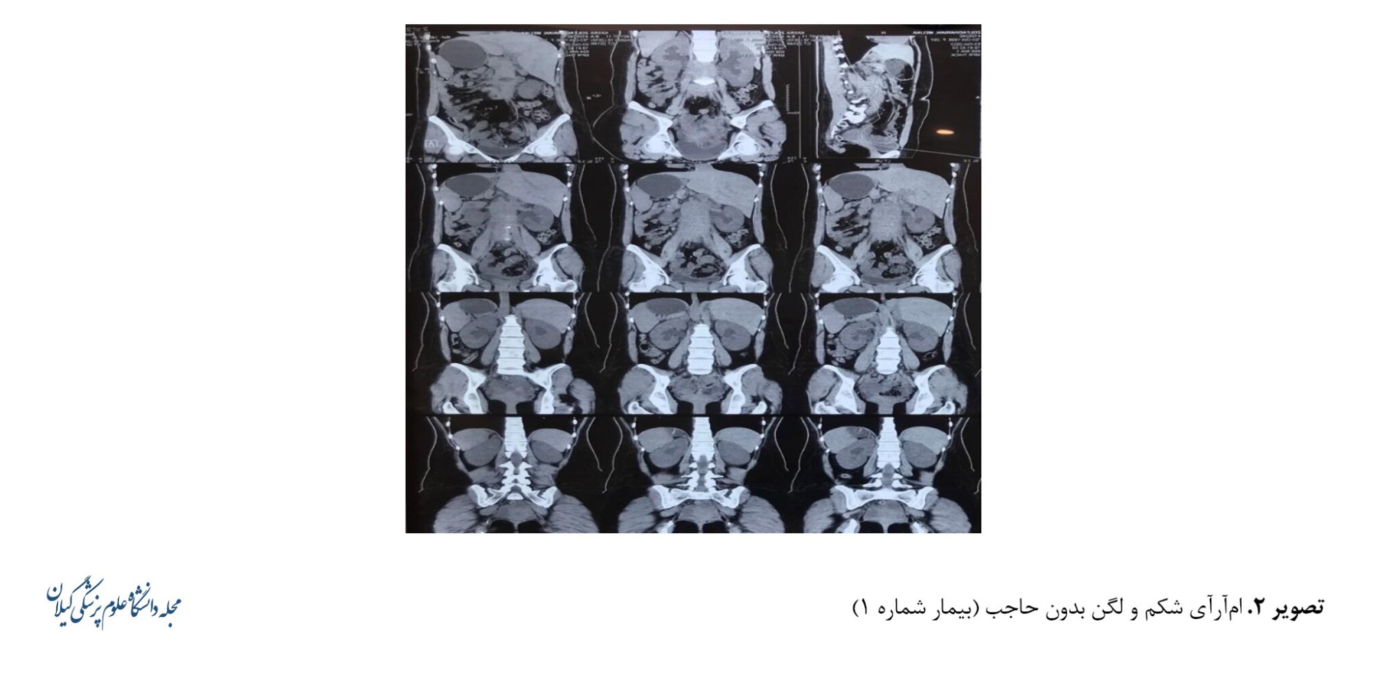 در بررسی آزمایشگاهی، شمارش کامل خون، نرمال؛ سرعت رسوب گلبول قرمز، 40 میلیمتر بر ساعت؛ پروتئین واکنشگر C، 10 میلیگرم در دسیلیتر؛ نیتروژن اوره خون ، 33 میلیگرم در دسیلیتر و کراتینین، 2/5 میلیگرم در دسیلیتر بود. در طول بستری برای بیمار سونوگرافی شکم و لگن انجام شد که در گزارش سونوگرافی، کبد، کیسه صفرا و پانکراس طبیعی بودند و اسپلنومگالی یافت نشد. هر دو کلیه بزرگتر از حد طبیعی گزارش شد که سایز کلیه راست 47×147 میلی متر و کلیه چپ 47×130 میلی متر بود. اکو پارانشیمی هر دو کلیه نرمال بود و هیدرونفروز درجه 1 با اتساع حالب در هر دو طرف مشهود بود. همچنین تخمدانها و رحم نرمال بودند. به دلیل هیدرونفروز در سونوگرافی، بیمار تحت سیتیاسکن بدون کنتراست شکم و لگن قرار گرفت که هیدرونفروز بدون وجود سنگ را در کلیه ها نشان داد. همچنین تراکم بافت نرم در ناحیه پاراآئورت به ابعاد 26×59×129 میلیمتر مشاهده شد. لنفادنوپاتی چندگانه با حداکثر قطر ساژیتال شکمی 10 میلیمتر در حفره شکمی مشاهده شد (
