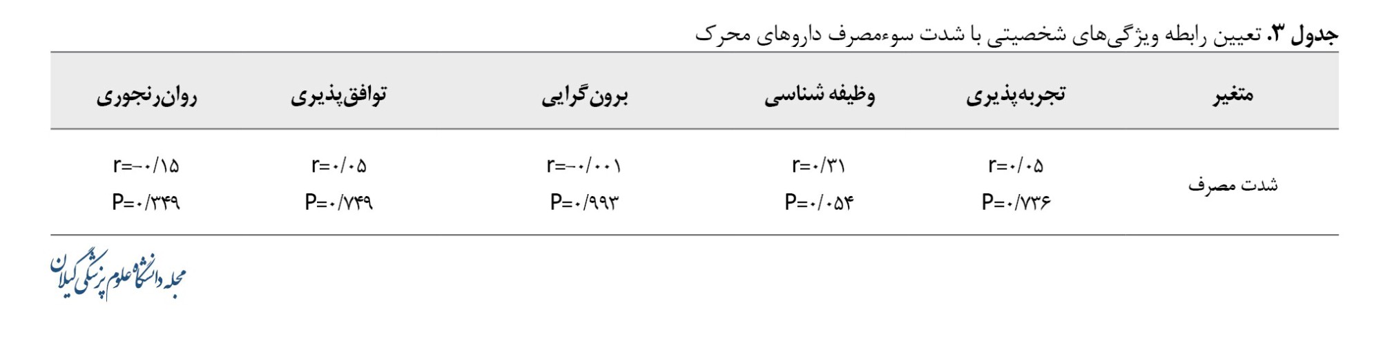 براساس آزمون همبسنگی اسپیرمن، بین ویژگیهای شخصیتی شرکتکنندگان با شدت سوءمصرف داروهای محرک ارتباطی مشاهده نشد (جدول شماره 3).