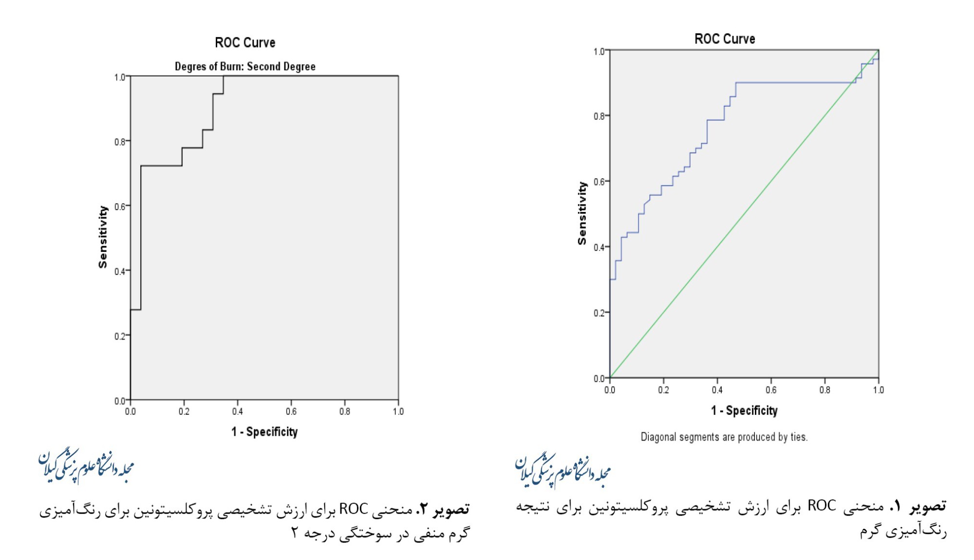 ارزش تشخیصی پروکلسیتونین برای نتایج رنگآمیزی گرم نیز براساس درجه سوختگی ارزیابی شد و مساحت زیر منحنی مشخصه عملکرد گیرنده (AUROC) 0/904 (0/991-0/817 :CL 95%) را به دست آورد (تصویر شماره 2).